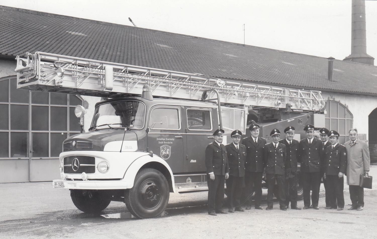 Die hydraulische Drehleiter DL 30 von Metz auf Mercedes-Benz-Fahrgestell wird in Dienst gestellt.