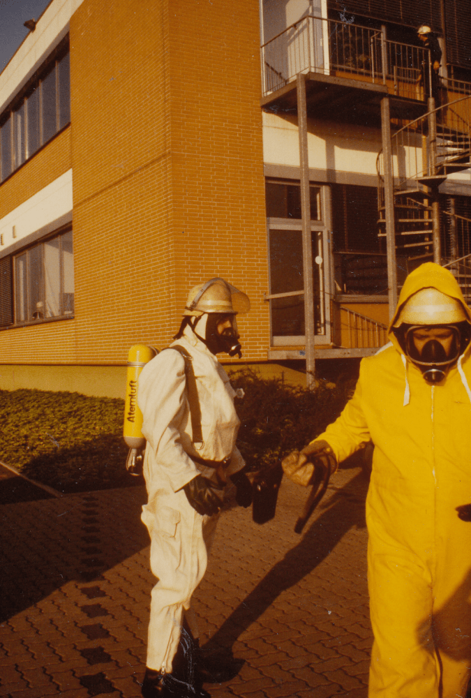 Nach dem Unglück im sowjetischen Atomkraftwerk Tschernobyl führte die Feuerwehr zusammen mit anderen Messtrupps im Kreisgebiet Messungen durch und sammelte Boden-, Bewuchs- und Gewässerproben, die im Umweltamt Darmstadt untersucht wurden.