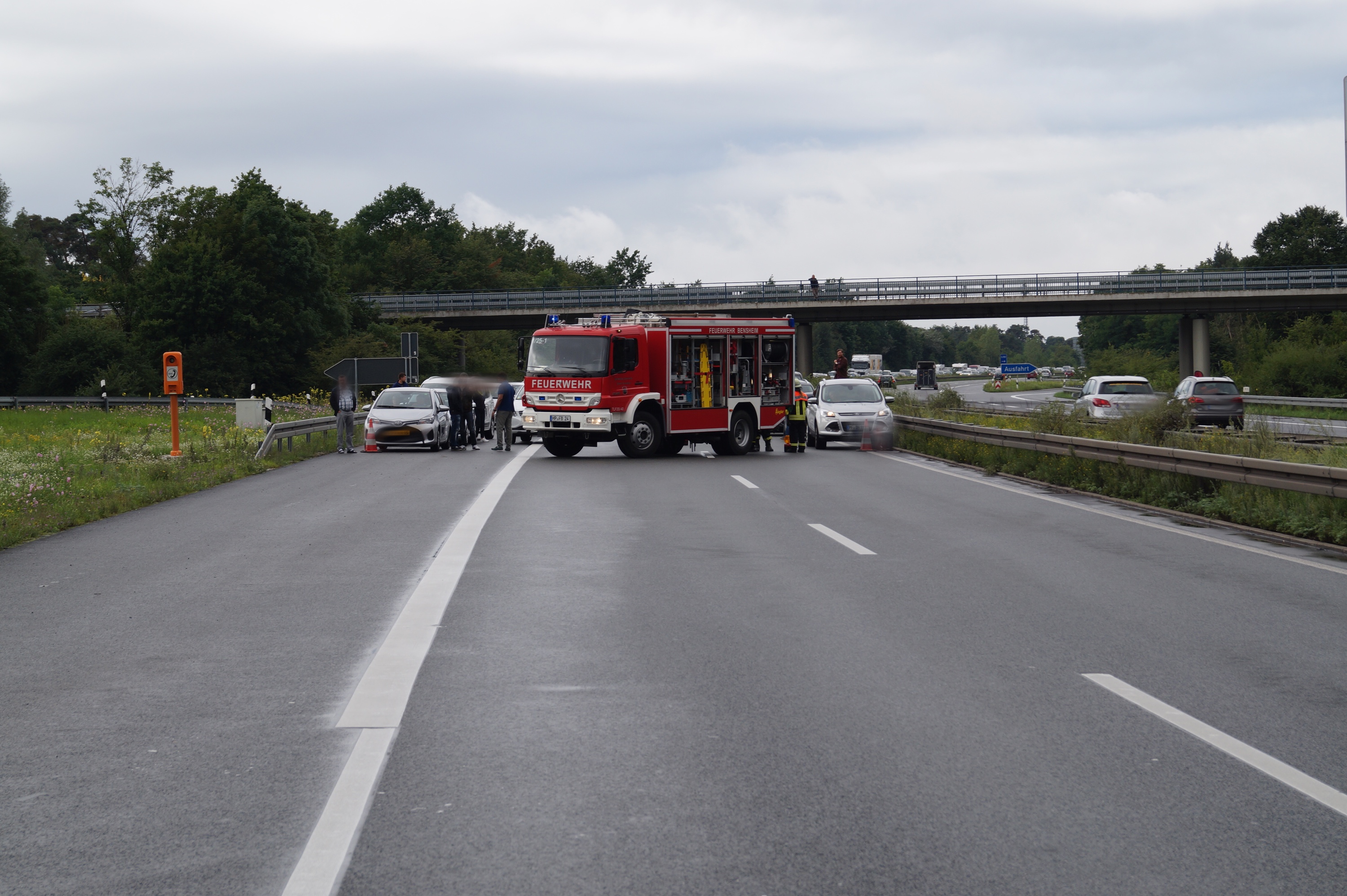Rettungsdienst und Polizei bereits vor Ort. 2 PKW’s beteiligt auf der linken Fahrspur. Beide PKW’s ineinander verkeilt. 3 Verletzte Personen, 2 wurden bereits ausserhalb durch den RD betreut. Eine Person noch im Fahrzeug und wird dort betreut. Die Person ist nicht eingeklemmt, sondern nur eingeschlossen im PKW. Laut Notarzt soll eine schonenden Rettung erfolgen. Dazu wurden auslaufende Betriebsmittel festgestellt. Die Feuerwehr sicherte die Unfallstelle ab. Aufgrund bevorstehender RTH Landung und technischer Rettung am PKW wurde die Autobahn Richtung Norden vollgesperrt. Dazu wurde der Brandschutz sichergestellt und die auslaufende Betriebsmittel abgestreut. In Absprache mit dem Notarzt wurde die schonende Rettung der eingeschlossenen Person mit hydraulischem Rettungsgerät durch Entfernung des Daches und der B-Säule durchgeführt. Anschließend wurde die Person mit Hilfe des Spineboards gerettet und dem Rettungsdienst übergeben. Einsatzstelle wurde danach an die Polizei übergeben.