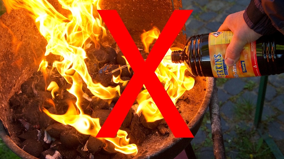 Gießen Sie niemals Spiritus in die Glut! Die dabei entstehende Stichflamme führt zu gefährlichen Verbrennungen.