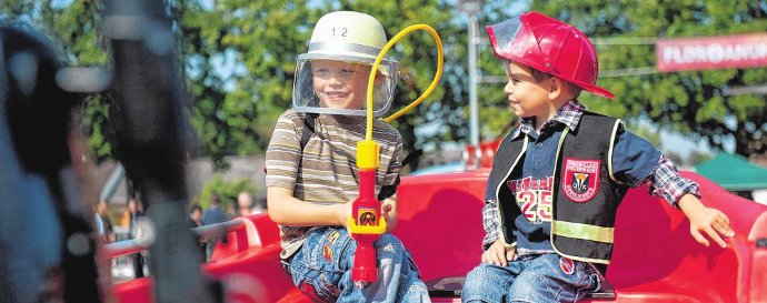 Bei sommerlichen Rahmenbedingungen war bis zum frühen Abend reger Betrieb rund um die ausgestellten Fahrzeuge und im „Florianum“ auf der angrenzenden Wiese. Hier war ein Spielparcours aufgebaut und es gab verschiedene Aktionen, die einen Einblick in die Arbeit der Feuerwehr gaben.