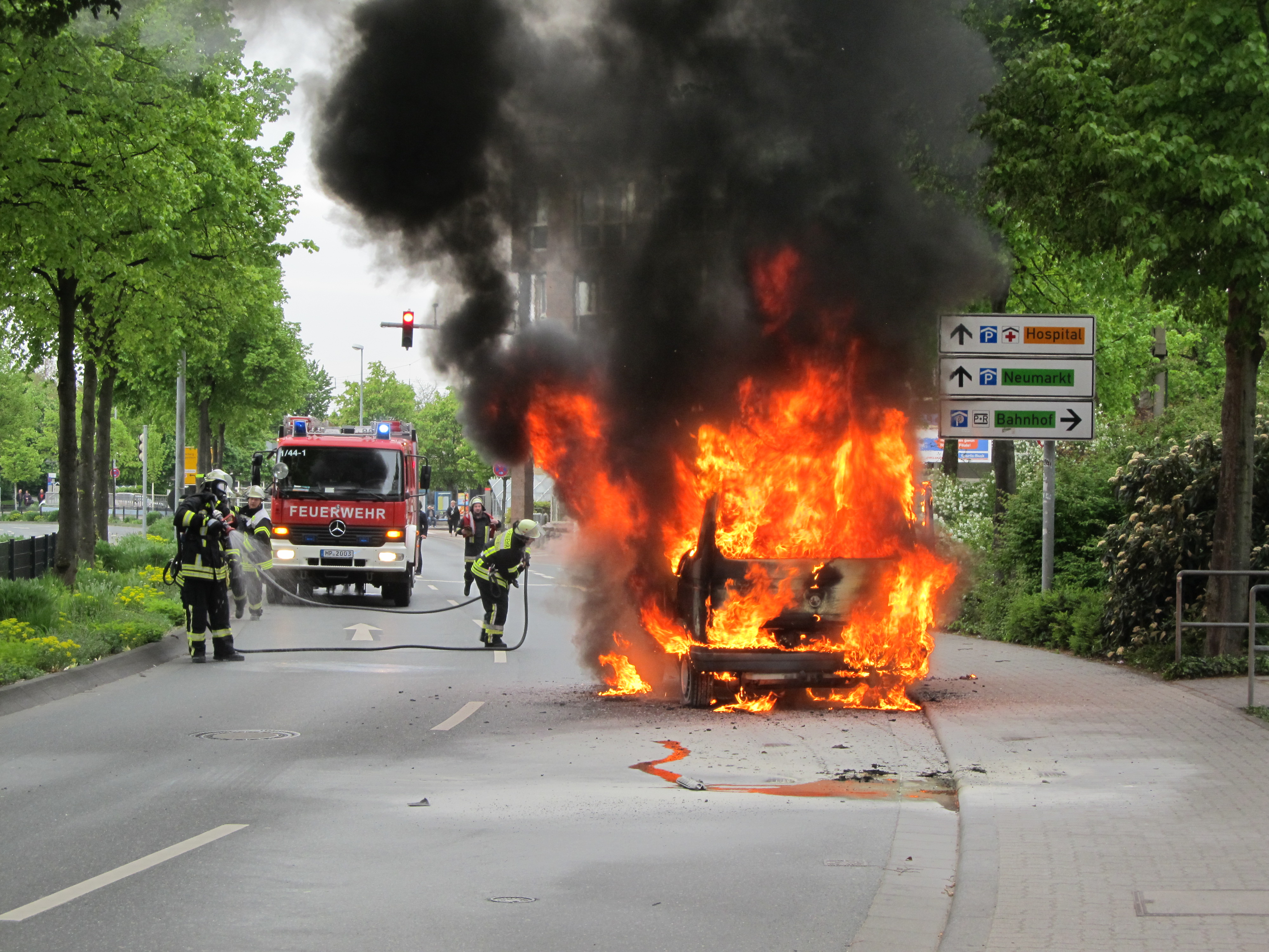 BENSHEIM. Zu einem Fahrzeugbrand wurde die Bensheimer Feuerwehr am Morgen kurz nach 8 Uhr gerufen. Auf der Rodensteinstraße in östlicher Richtung unterwegs, bemerkte ein Autofahrer, dass es in seinem Fahrzeug brennt. Unweit der Einmündung zur Fehlheimer Straße hielt er an und rief die Feuerwehr. Verletzt wurde niemand und es kam zu keinen nennenswerten Verkehrsbehinderungen. Am Fahrzeug entstand Totalschaden. (df)
