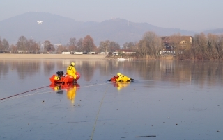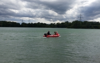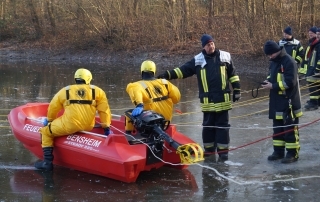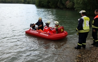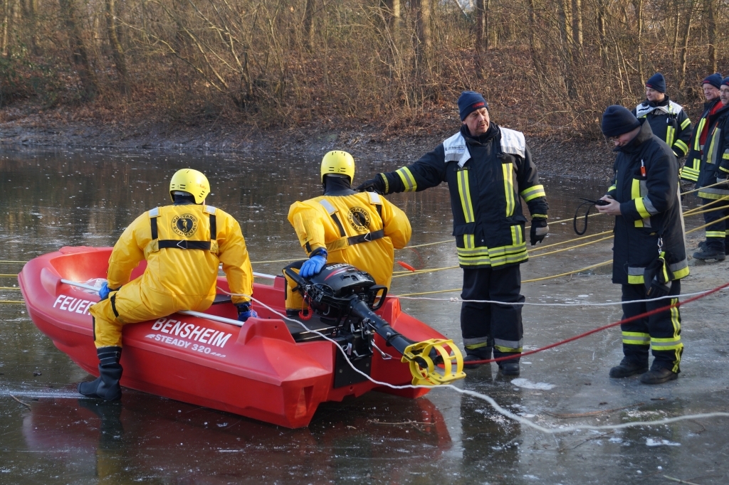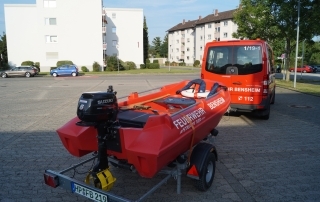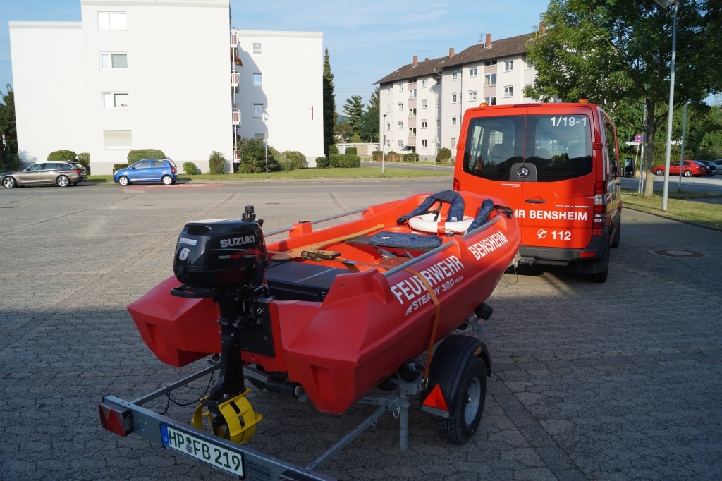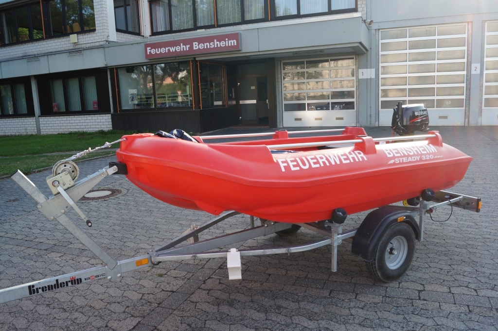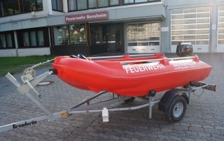 Der Anhänger-Boot der Feuerwehr Bensheim rückt bei der Personenrettung aus dem Wasser/Eis aus. Des weiteren ist er bei Einsätzen mit Öl auf dem Gewässer dabei um die Ölsperre auf das Wasser zu bringen. Das Zugfahrzeug für den Anhäger-Boot ist in der Regel eines der beiden Mannschaftstransportfahrzeugen oder der Kommandowagen. Am Einsatzort angekommen wird das Boot von der Besatzung des Zugfahrzeuges auf das Wasser gebracht und von selbigen besetzt. Die Besonderheit an diesem Boot ist, dass es wegen dem Material (Hartkunststoff) und der Bauart (Kufen unter dem Boot) auch für die Eisrettung eingesetzt werden kann.
