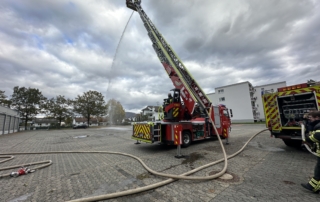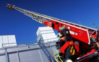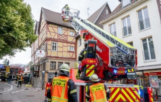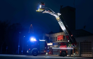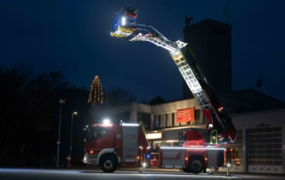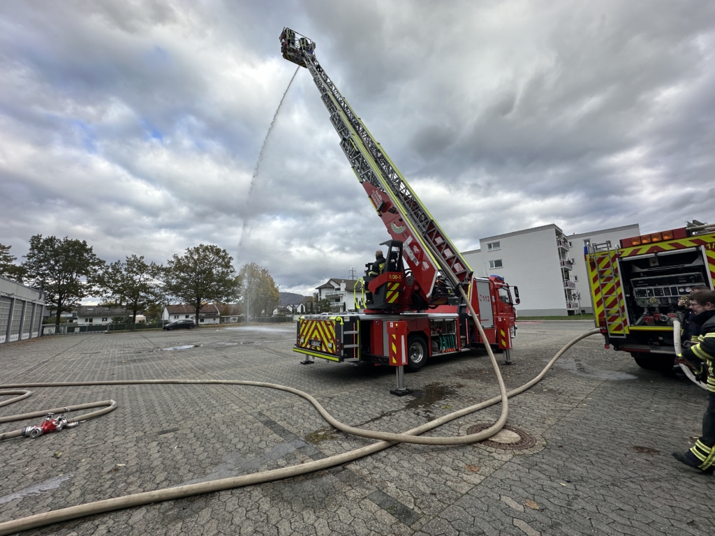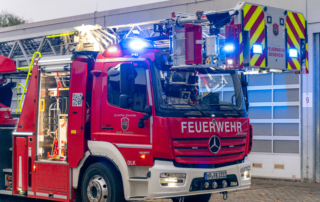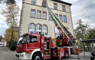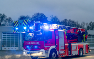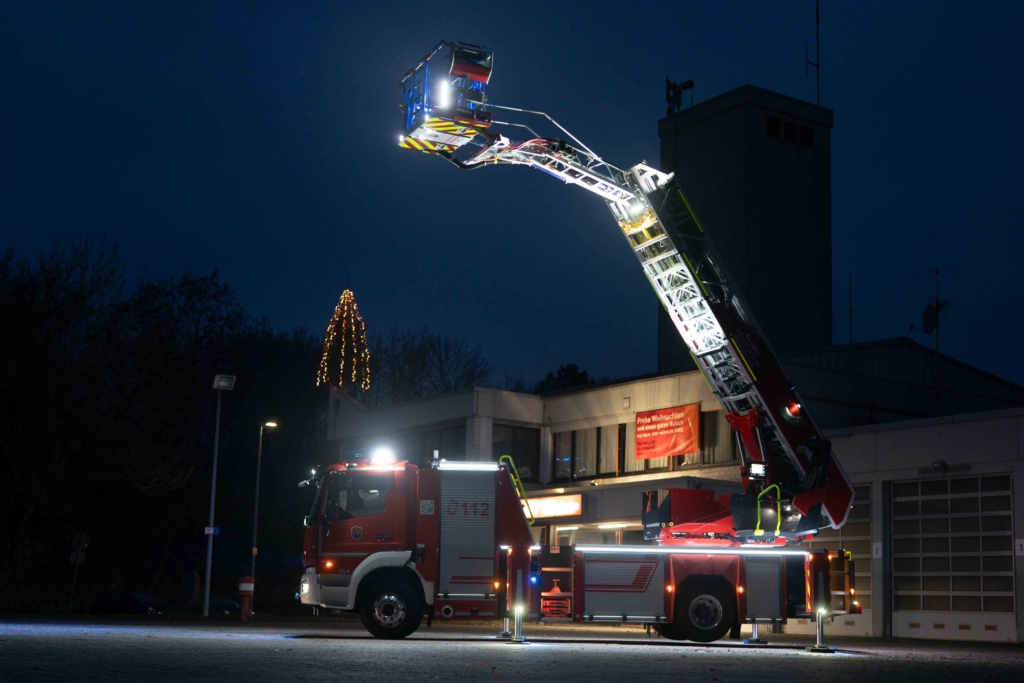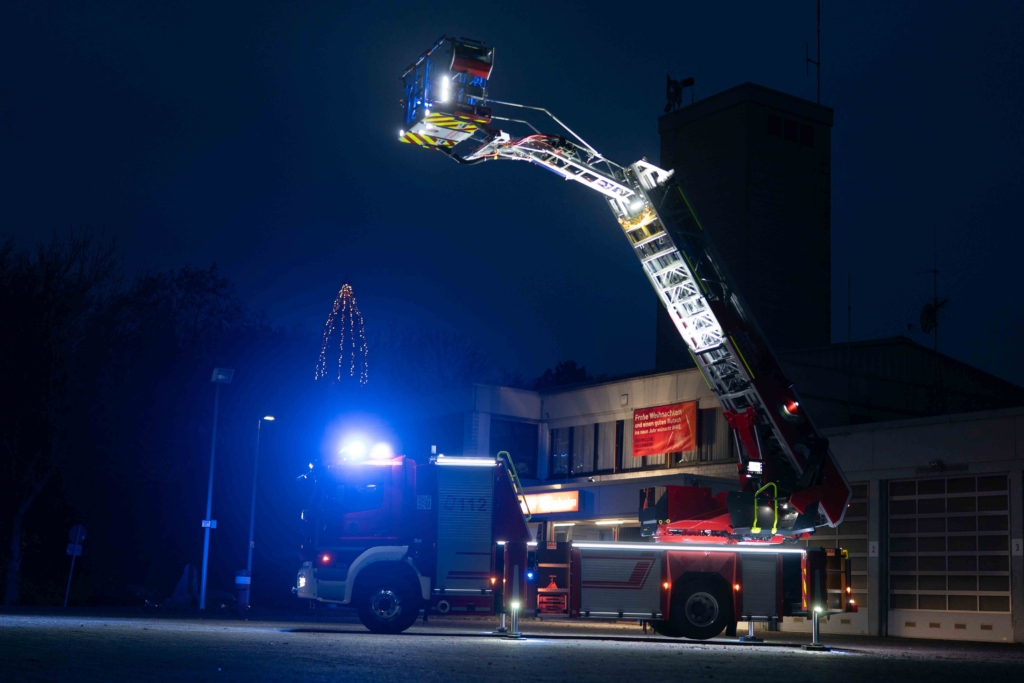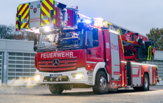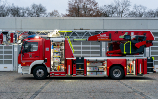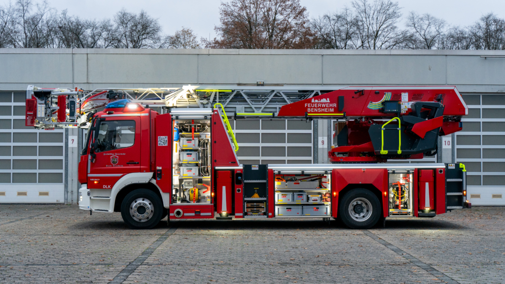Die DL(A)K 23/12 der Feuerwehr Bensheim wurde 2023 von Rosenbauer ausgeliefert. Sie hat einen 5 Personenkorb und kann über ein Gelenk im obersten Leiterteil nochmals abgeknickt werden. Dies ist von Vorteil, um Dachfenster und tiefgelegene Stellen besser erreichen zu können. Die Drehleiter dient zur Menschenrettung und Brandbekämpfung und ist das 3. Fahrzeug im Löschzug nach ELW und LF 16/1 und fährt vor dem HLF20 raus. Oft wird die Drehleiter auch vom Rettungsdienst angefordert, wenn ein Treppenhaus zu eng ist, um einen Patienten darüber transportieren zu können. Dann wird eine der 2 Tragen, mit der dafür vorgesehenen Halterung, auf/ oder im Korb befestigt und der Patient schonend zum Boden transportiert. Im obersten Leiterteil ist außerdem eine B-Leitung fest verlegt, was bei der Brandbekämpfung über die Drehleiter, Zeit beim Verlegen der Schlauchleitung spart. Am Korb sind verschiedene Aufnahmen vorhanden. Hier können z.B. 2 verschiedene Monitore zur Wasserabgabe, Krankentragenhalterungen, Adapter für den Elektrolüfter, LED-Scheinwerfer oder die Vorrichtung für das Rollgliss befestigt werden. Am Korb sind zusätzlich noch zwei LED-Scheinwerfer befestigt. Für den Betrieb von Elektrogeräten stehen mehrere Steckdosen (230/400V) am Korb zur Verfügung, welche über den auf dem Drehkranz verlasteten Stromerzeuger, mit Strom versorgt werden. Der Stromerzeuger kann direkt vom Korbbedienstand aus, gestartet werden.