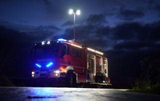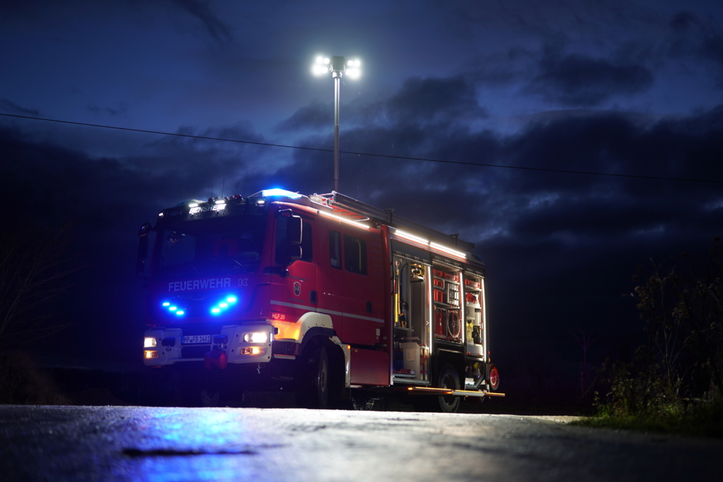 Der zwischen der Kabine und dem Aufbau montierte Lichtmast kann pneumatisch ausgefahren werden. Die LED-Scheinwerfer werden über den Fahrzeugmotor betrieben. Außerdem wird für weitere elektrische Geräte ein 13 kVA Stromerzeuger mitgeführt.
