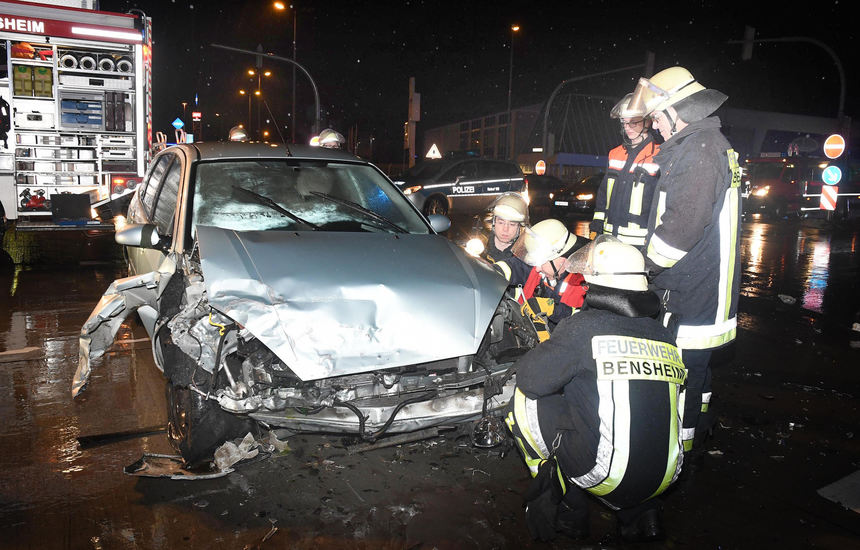 BENSHEIM. Bei einem Unfall an der Ecke Wormser Straße/Amperestraße in Bensheim sind am Mittwoch gegen 20.55 Uhr zwei Personen verletzt worden. Im Kreuzungsbereich zur Auffahrt auf die A 5 Richtung Heidelberg stießen zwei Autos zusammen. Beteiligt waren eine 38 Jahre alte Frau aus Lampertheim und ein 24 Jahre alter Mann aus Einhausen. Er wollte mit seinem BMW von Bensheim kommend nach links auf die Autobahn abbiegen. Die Frau war in einem Ford auf der B 47 Richtung Stadtmitte unterwegs. Nach Polizeiangaben beachtete sie das Rotlicht nicht und fuhr nahezu ungebremst in die Beifahrerseite des BMW. Durch die Wucht des Aufpralls drehte sich der Wagen des Mannes und rammte den Mast einer Ampelanlage, der daraufhin aus der Bodenverankerung gerissen wurde. Der Ford schleuderte ebenfalls über die Fahrbahn und kam auf der Kreuzung zum Stehen. Polizei, Rettungswagen und Feuerwehr waren vor Ort. Für die Unfallaufnahme mussten Straße und Autobahnauffahrt kurzzeitig gesperrt werden. Sowohl der 24-Jährige als auch die 38-Jährige zogen sich Verletzungen zu und wurden ins Krankenhaus gebracht. Den Sachschaden an beiden Fahrzeugen und der Ampel bezifferte die Polizei auf 35 000 Euro. dr