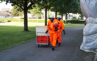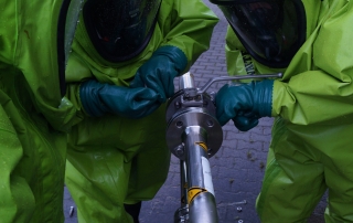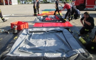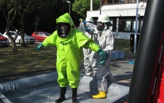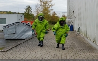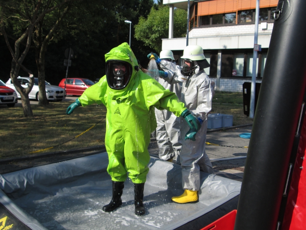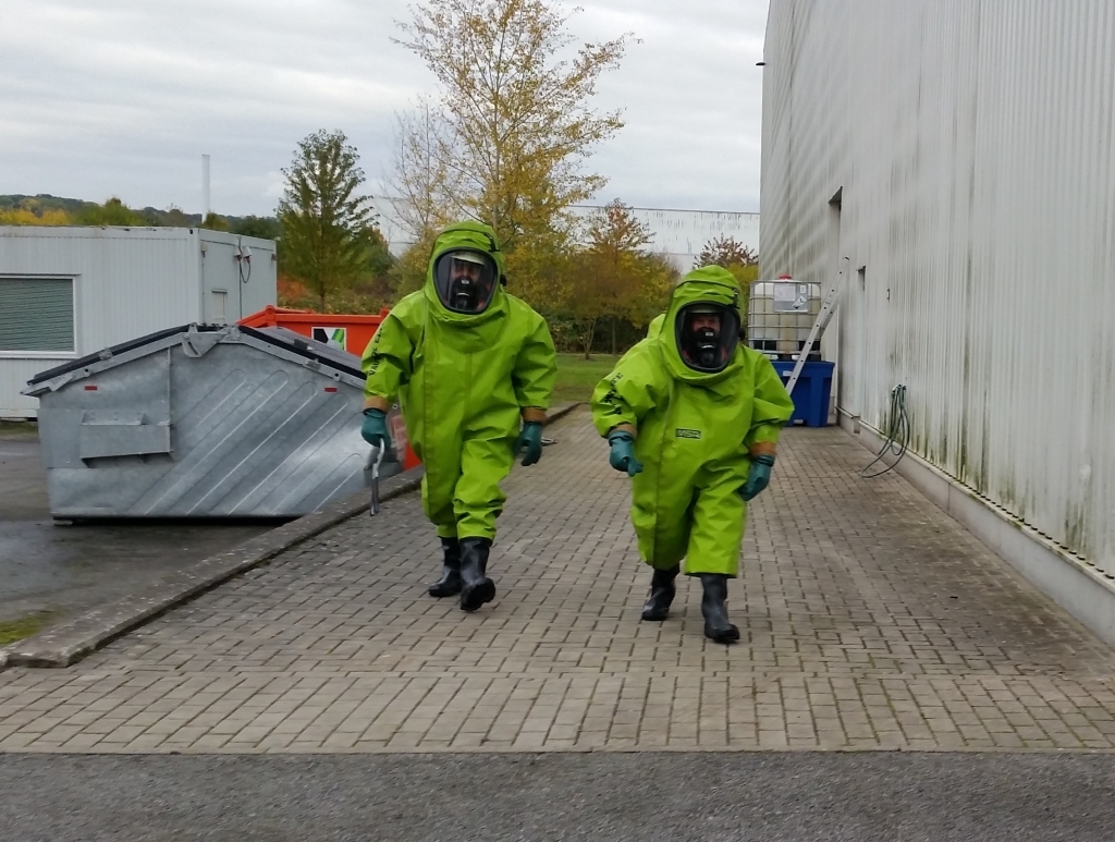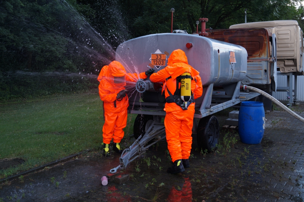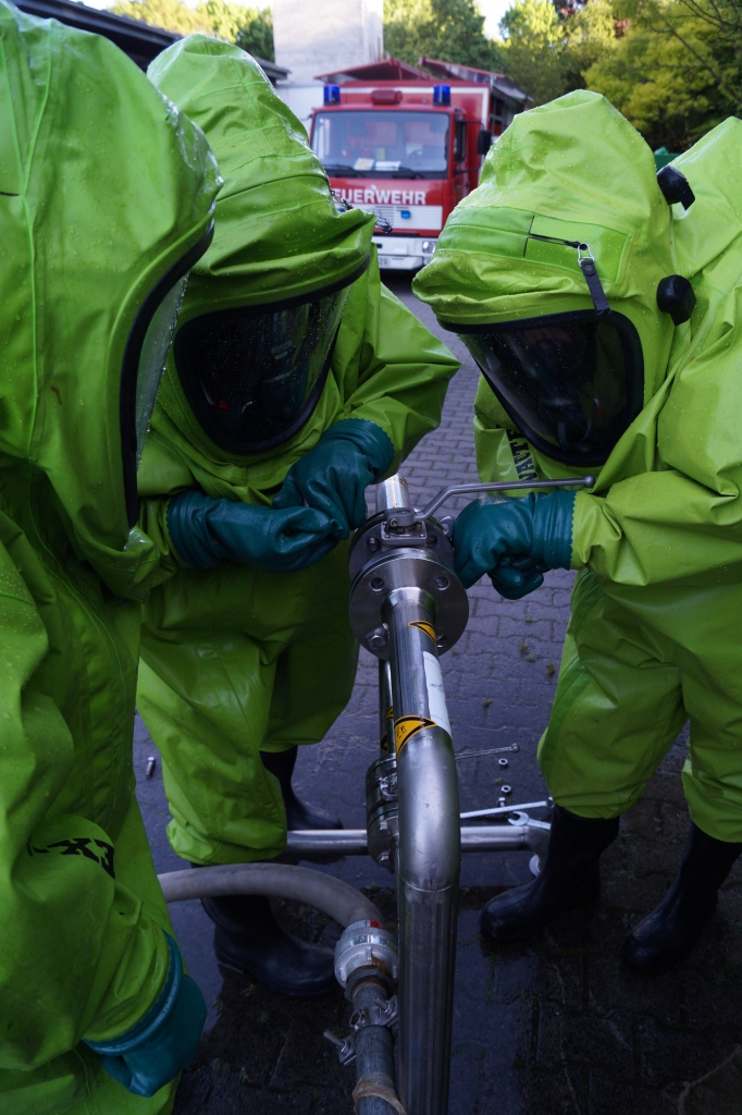 Darüber hinaus wird der Umgang mit Spritzschutz- und Chemikalienschutzanzügen sowie verschiedener persönlicher Schutzausrüstung bis hin zum Atemschutz geübt. Des Weiteren muss auch der Umgang mit diversen Messgeräten, speziellen Gefahrgut-Pumpen und chemikalienbeständigen Schläuchen trainiert werden. Ein Training verschiedener handwerklicher Tätigkeiten rundet die Ausbildung ab.